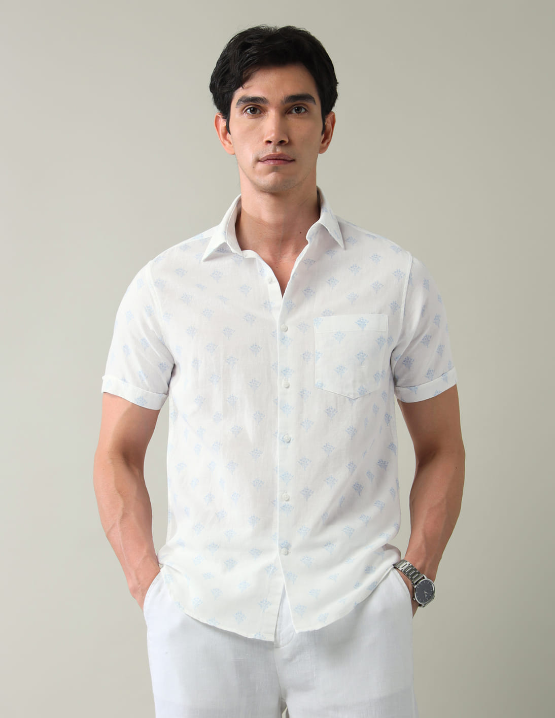 Floral Printed Regular Weave Slim Fit Shirt