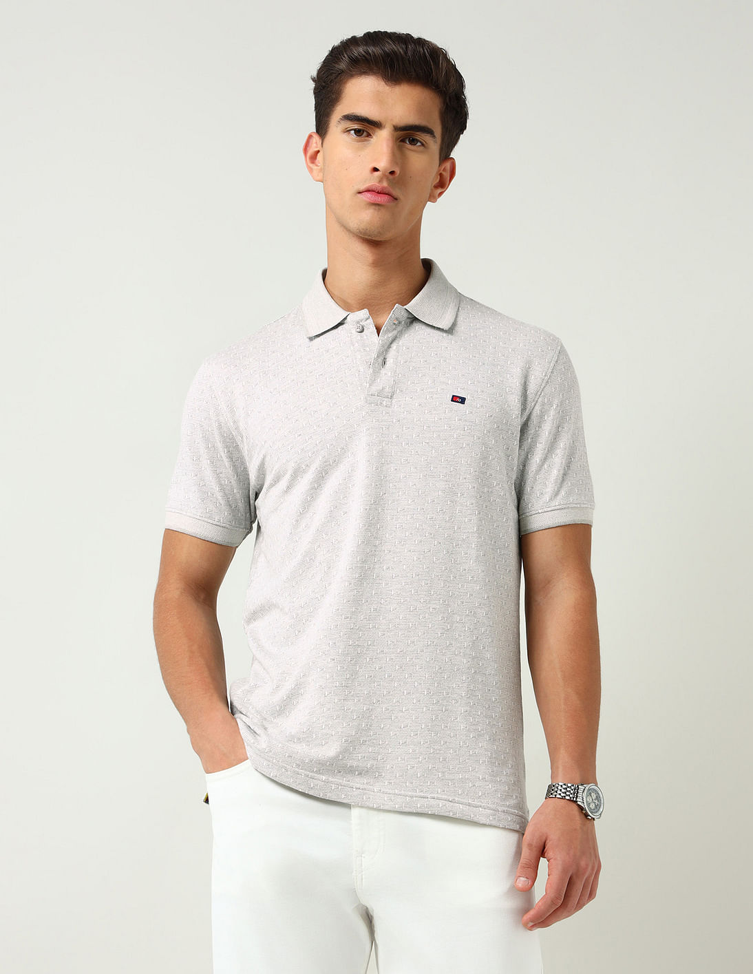 Modern Slim Fit Geometric Printed Polo Shirt