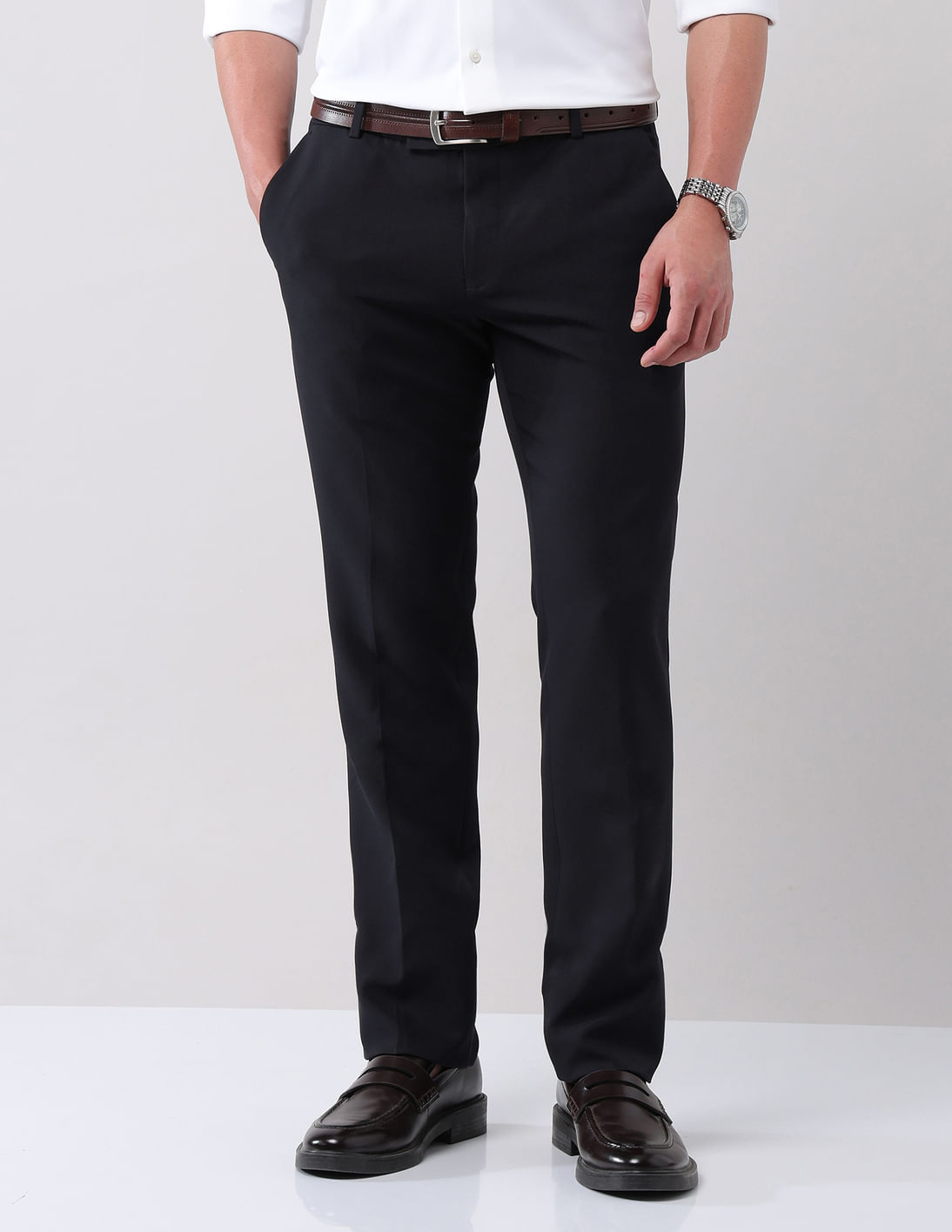 Regular Fit Solid Formal Trousers
