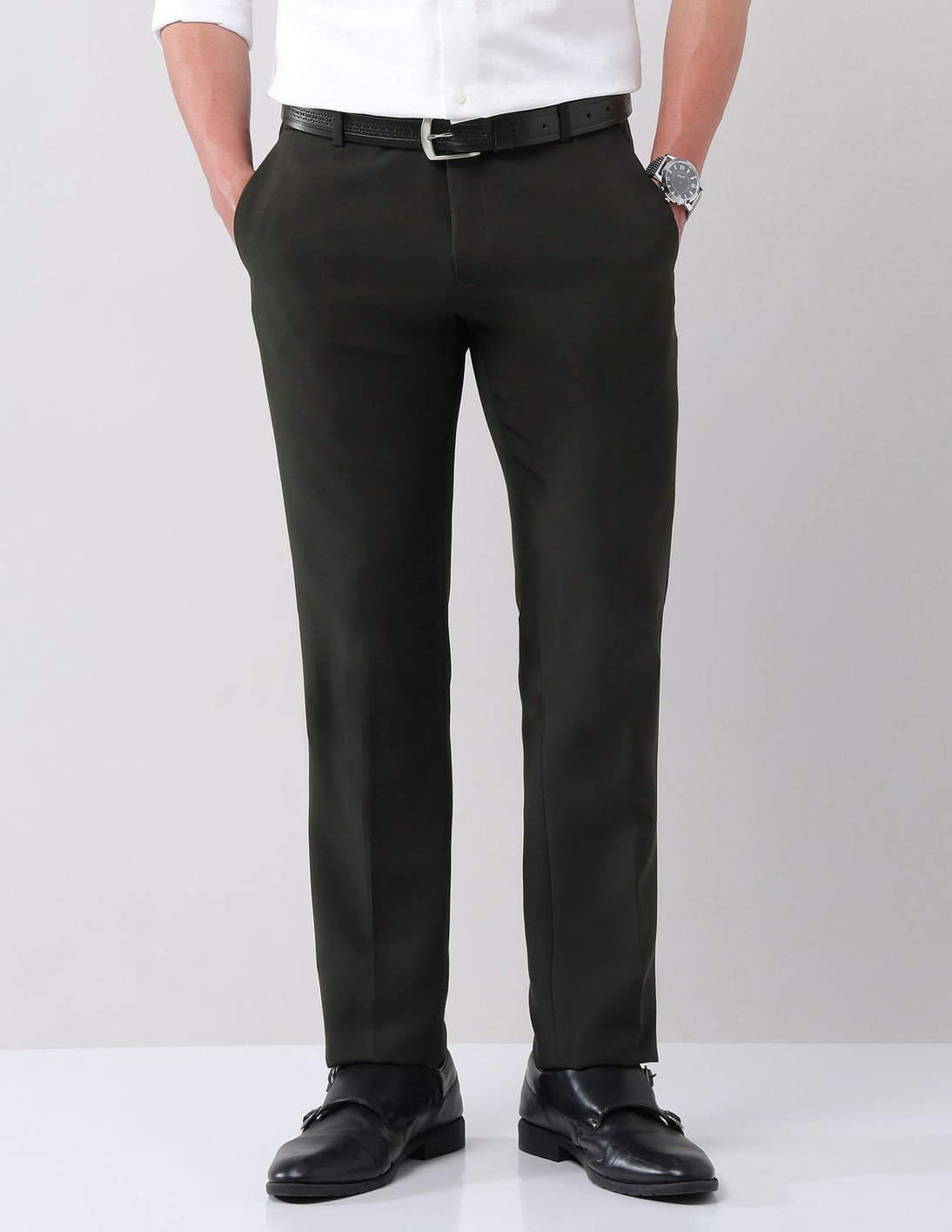 Regular Fit Solid Formal Trousers