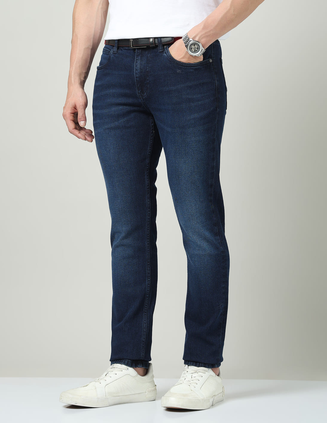 Slim Fit Mid-Rise Whiskered Jeans