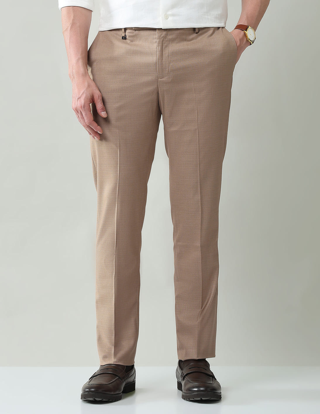Solid Mid Rise Regular Fit Trousers