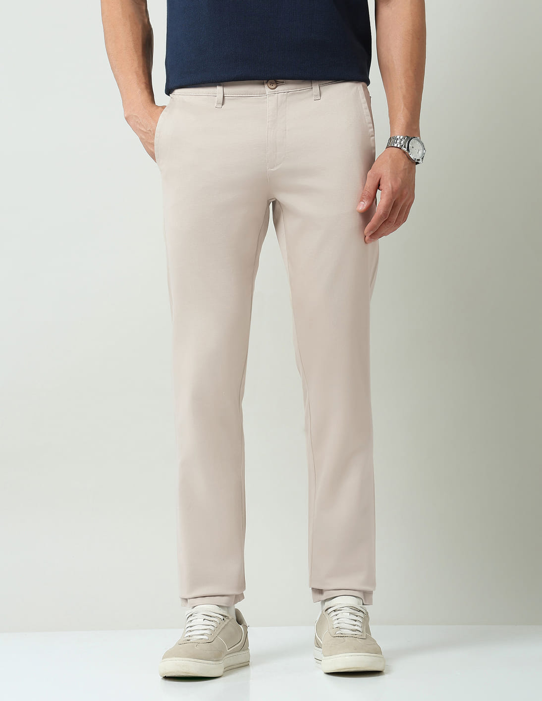 Solid Mid Rise Slim Fit Chinos